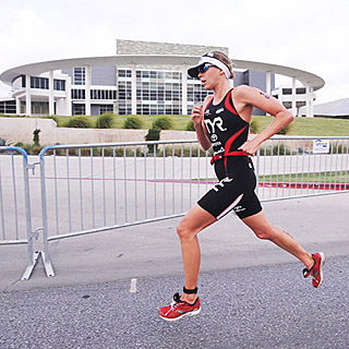 Collins towed the rest of the group, just managing to keep Potts at the same gap the great swimmer took with him out of the water. But Collins' pace was too much for Ospaly and Reed, who fell off in the latter stages of the bike and entered T2 about :40 back of the duo of Kemper—who rode his ITU bike in this no-draft event—and Collins.