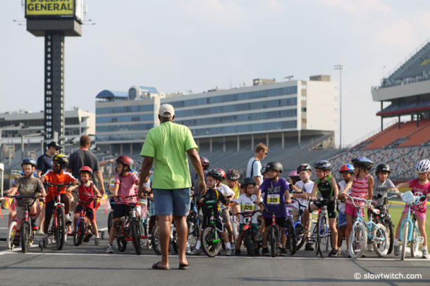 The Charlotte Motor Speedway hosts cyclists once a month during the summer.