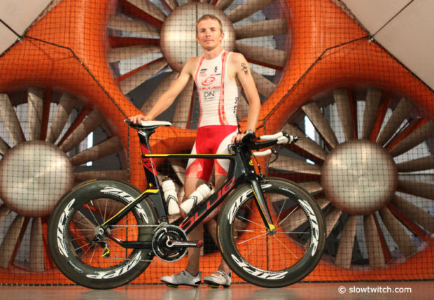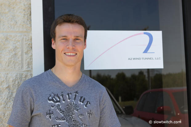 For the 2-time Ironman St. George winner Heather Wurtele from Canada this wasn't the first time here in the A2 wind tunnel in North Carolina plus she already had quite a bit of time on her Blue Triad SL, but she left today with a few small changes that should save quite a bit of power moving forward. British Indy Car pilot Alex Lloyd actually got set up on his Triad SL in the wind tunnel and felt quite comfortable after his session there. Last up was the super skinny Belgian age grouper Pieter De Neve who had been fit quite nicely in Germany and really didn't too much help here.