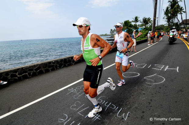 Running past Chris Lieto on Alii Drive in 2008.