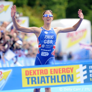 Helen Jenkins celebrates her home country victory that cinched her second Olympic appearance.