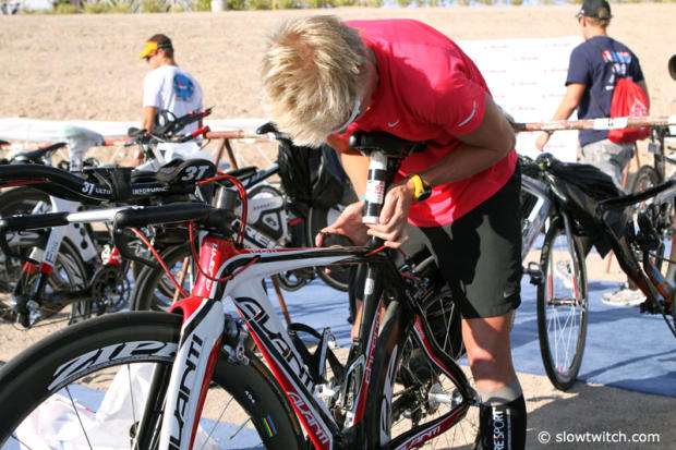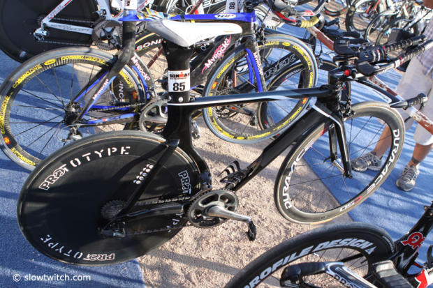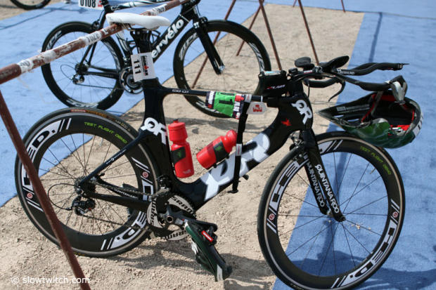 But quite a few folks were surprised when they saw Craig Alexander show up with a Cervelo P4 towards the end of the bike check-in period.