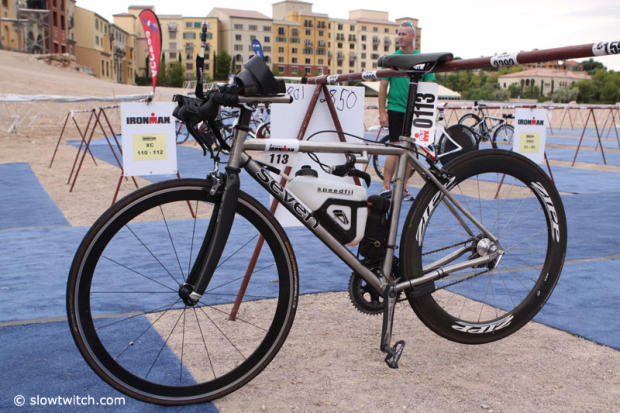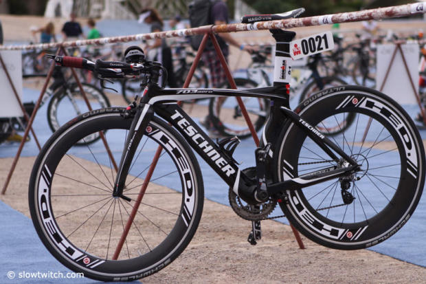 Today the Marines Ironman 70.3 World Championships athletes checked in their bikes at T1 between noon and 6pm and we were there to check out some of the bikes and a few of the athletes.