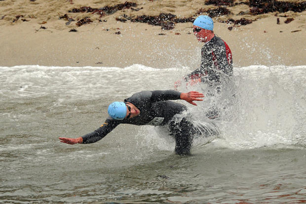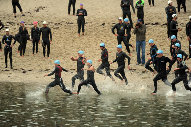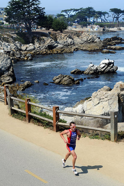 The triathlon that begins with a kelp crawl in the frigid Monterey Bay waters off Lovers Point has earned fierce loyalty from the estimated 1,200 age group and elite competitors who have flocked there every September for 17 years. This year, the Tri-California event commemorated the lives lost in the September 11 terrorist attack a decade ago with prayers, flags, and a memorial wall where the triathlon community wrote heartfelt tributes to the citizens lost, some of whom were dedicated triathletes.