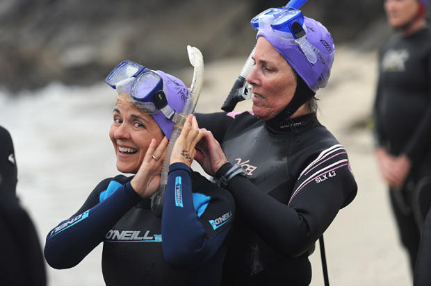 A good friend adjusts the goggles.