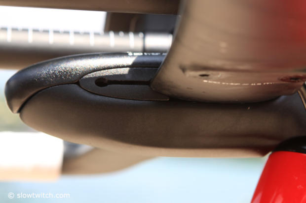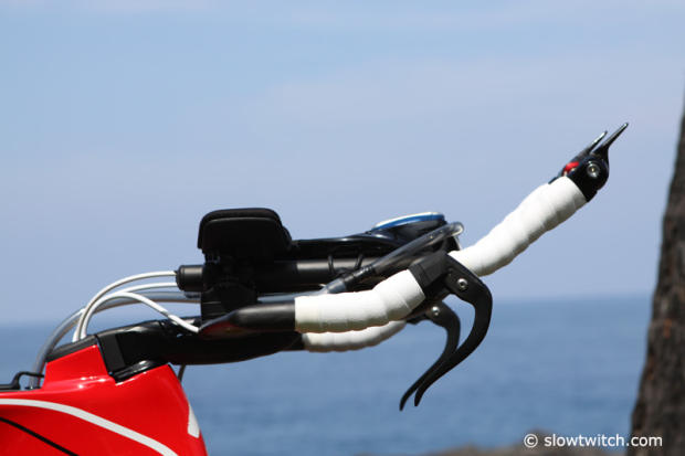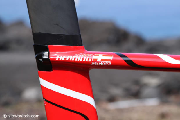 The aero bar system is quite versatile and Rasmus rides his medium Shiv Tri slammed.
