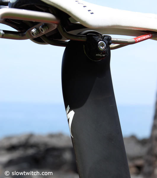 The seat post is reversible and comes in 2 different setbacks on the Pro and S-Works versions.