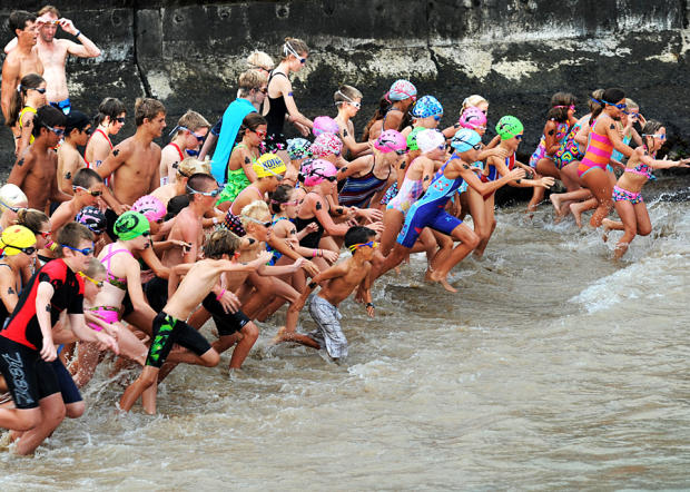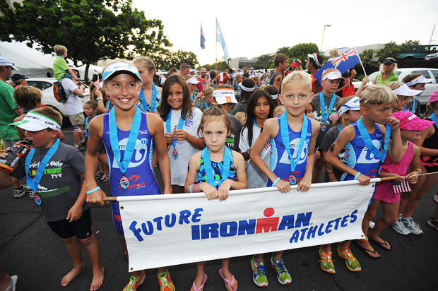 Future Ironman Athletes march after the Keiki Splash and Dash the hour before.