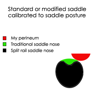 Count me among them, in particular while riding my road race bike with a road race saddle. Accordingly, if the split in the saddle occurs in the nose rather than in the rear, then, like the image adjacent my perineum isn't sitting on the side of the nose, rather it's sitting right on one of the two "peaks" on the nose.