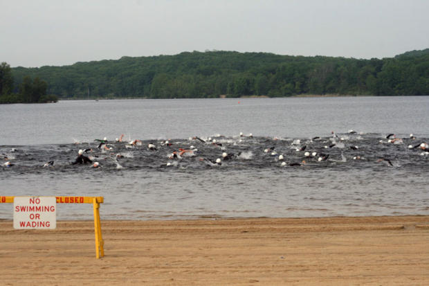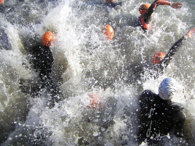 Frantic swim start of the Banyoles Half in Spain by Thomas Rohde