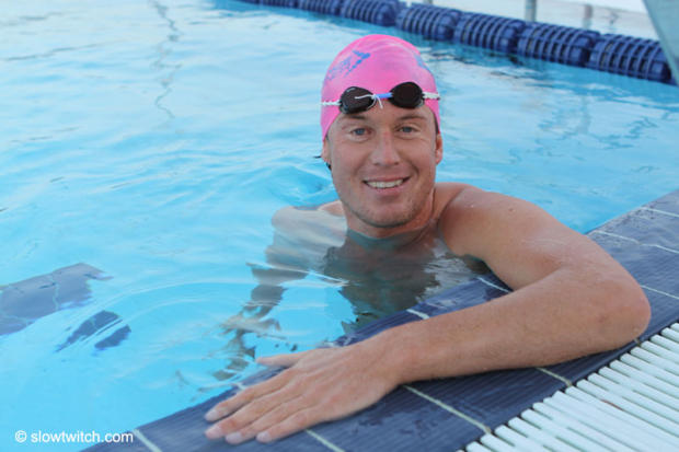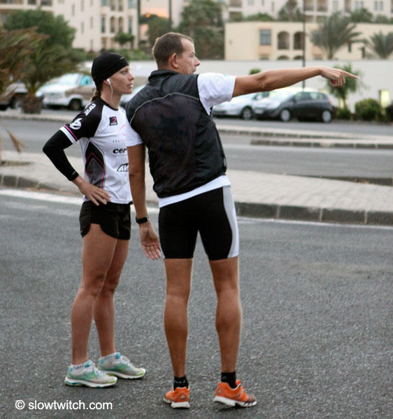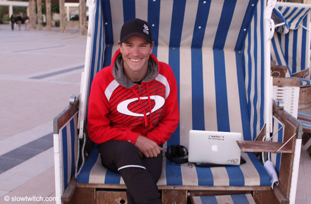 Both Raelert brothers are here on Fuerteventura, and we ran into Michael checking his email after a swim.
