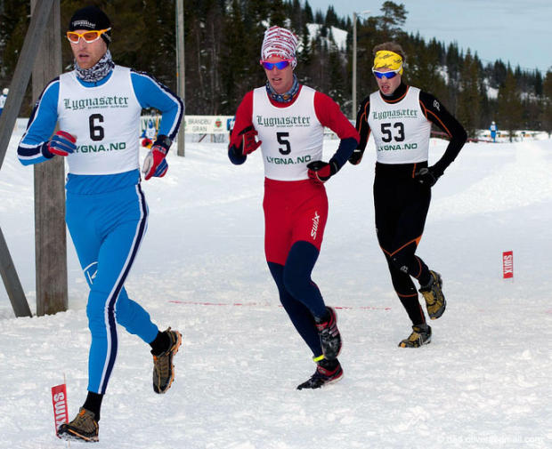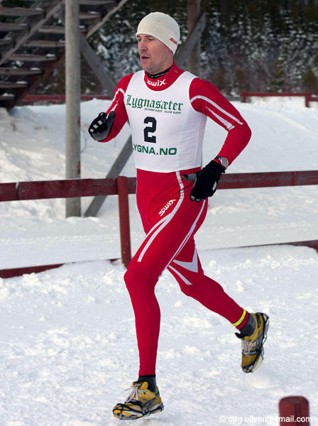Kristian Monsen took charge during the run. Note the traction support on his running shoes.