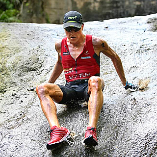 Ben: Pretty much head down, bum up, run hard as I could. The first 3 or 4 kilometers were on the flat, then we came to a big hill leading to a waterfall and dropping through a jungle near the end. I thought if I could make up a minute in the first part of the run, I could pass him on the climb and hold position and the lead going into the last section of the waterfall and downhill and run through the creek to the finish. I took a lot of risks in that section to increase my advantage over Olivier and ran strong all the way home.