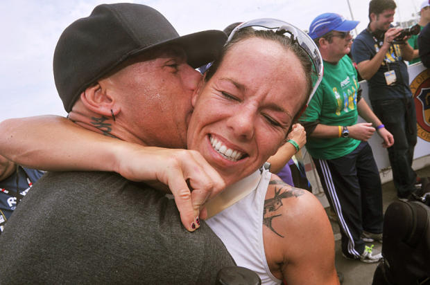 Melanie McQuaid was carried off unconscious at the XTERRA World Championship. Saturday, she exulted in a fully conscious celebration of her win at Oceanside.