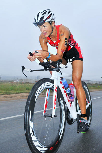 Melanie McQuaid credited her new Trek bike with unleashing her full pavement potential while posting a race-best 2:22:44 bike split.