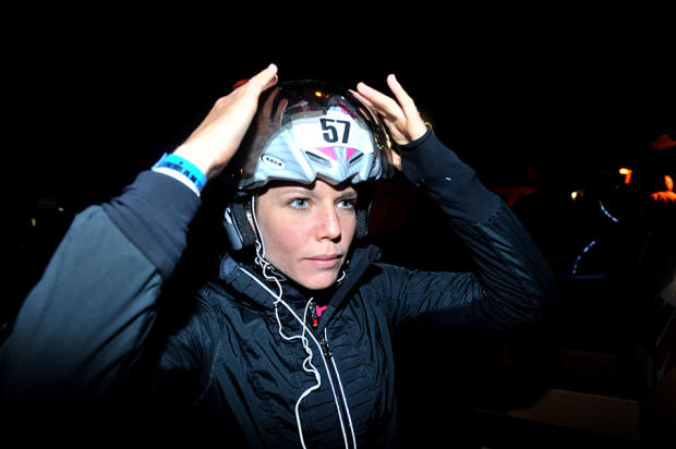 Magali Tisseyre had a new aero helmet but she pulled out after the swim.