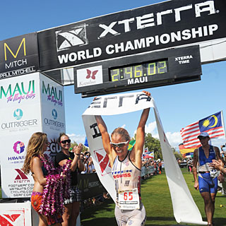 Lesley: I was 2nd at the 2009 XTERRA World Championship and that was massive — real huge. My dad Alistair flew in from Scotland and he and my husband were there screaming and jumping up and down in the last mile. Then my dad ran the last 100 yards with me.