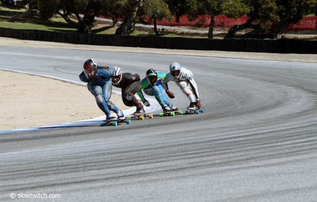 The wild action during the downhill skateboard event. They were rumored to reach 50 miles an hour.