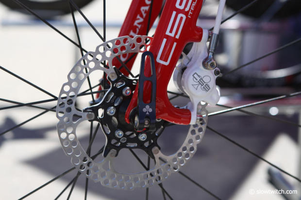 A Formula hydraulic disc brake on the Colnago C59 Disc.