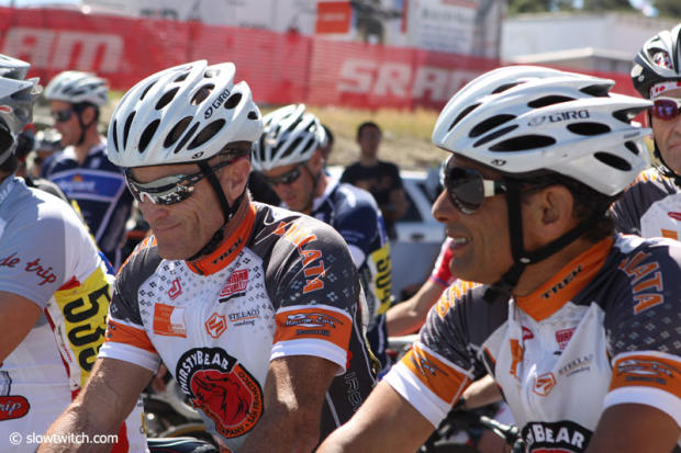 Nervous laughter at the beginning of the men's 45 plus road event.