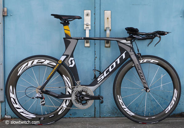 Team Commerzbank is no longer, but the Scott Plasma 3 is still a very desirable and fast TT machine. Sebastian Kienle though moves his so fast that most people will only see a blur and a trail of smoke.