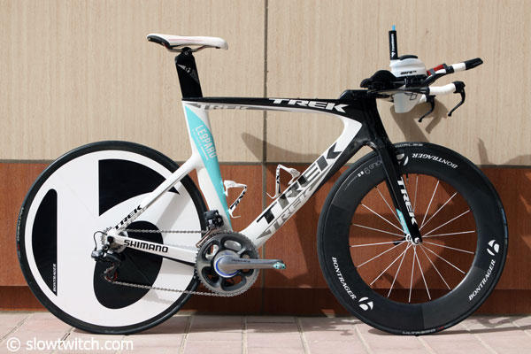 The Trek Speed Concept is a very smartly executed TT bike and the one featured here belongs to Dirk Bockel. Very sleek lines and easily available in a variety of versions, this bike was very popular at the 2011 Ironman World Championships.