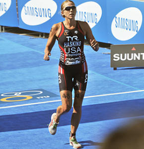 Ironically, Helen Jenkins was Haskins' breakaway partner in their two-woman breakaway to gold and silver at the 2008 ITU World Championship. Haskins was joined by Jenkins once again Friday. But they were joined by six others largely because the San Diego course was almost entirely flat – which makes getaways more crowded. On this day, Haskins was worn a bit by her leading part in the bike surge but she bravely latched on to Bennett's certified speedster's heels and gave it her best shot until her body unraveled from her heart about Mile 3.