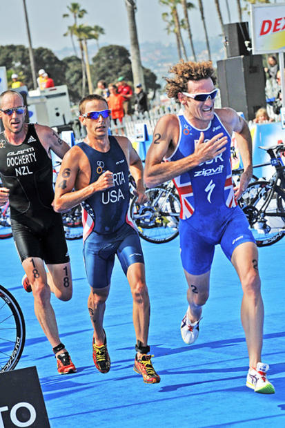 While $20,000 went to overall men's winner and Olympic co-favorite Jonathan Brownlee of Great Britain, what came to Hunter Kemper for his 5th place and Manuel Huerta for his 9th place finish was priceless. For Kemper, his flawless race topped off by a blazing 30:28 10k earned a rare 4th straight trip to the Olympic triathlon. For Cuban-born U.S, citizen Manuel Huerta, his gutsy 30:45 run at the end of an aggressive swim and bike was the fulfillment of a long held dream – and a ticket to the 2012 London Olympics. At the end, the 2012 San Diego round of the ITU World Triathlon Series was a dramatic success.