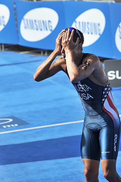 Manny Huerta exultant after finishing 9th and earning the second and final U.S. men's 2012 Olympic spot.