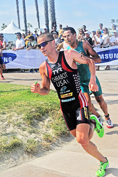 Jarrod Shoemaker leads Hunter Kemper in the early stages of the run. Shoemaker finished 24th and 4th American.