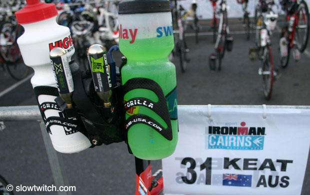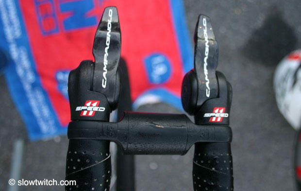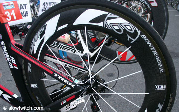 Have a closer look at the Campagnolo equipped Trek Speed Concept of Aussie Pro Bek Keat of team Trek / K-Swiss. Keat had won the Cairns race as a Challenge event in 2011, but this year at Ironman Cairns after a race best bike split was leading the women's field during the run until a torn calf muscle forced her to pull out.