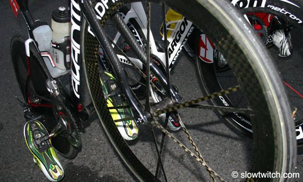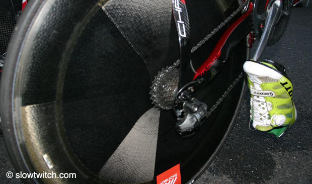 Keywin pedals and Scott Tri shoes on the Shimano Dura-Ace cranks.