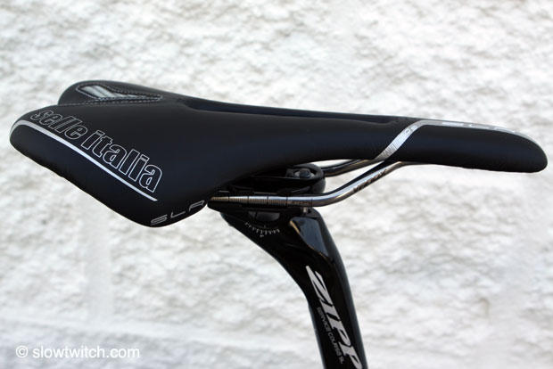 A Selle Italia SLR saddle on top of the Zipp Service Course SL post.