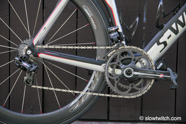 Zipp 404 Firecrest Carbon tubulars front and back mounted with S-Works Turbo tubular tires.