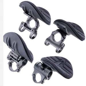 Bontrager’s lineup includes the aforementioned Race X Lite Bullhorn, and also a similar Race X Lite Carbon Aerobar. This is an integrated base bar + clip, and curiously has a shorter drop and reach than the standalone bullhorn (and stands as a better choice for those seeking a shorter distance to their base bar). They also have the simple aluminum Race Bullhorn”, which I’ve personally used and trimmed the reach to fit.
