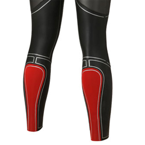 The Archimedes also features a par of muscular "releases"—specifically in the bicep and calf—that portend to allow these muscles to flex and relax without constraint. Those are the red areas in the images, and are fabric only.