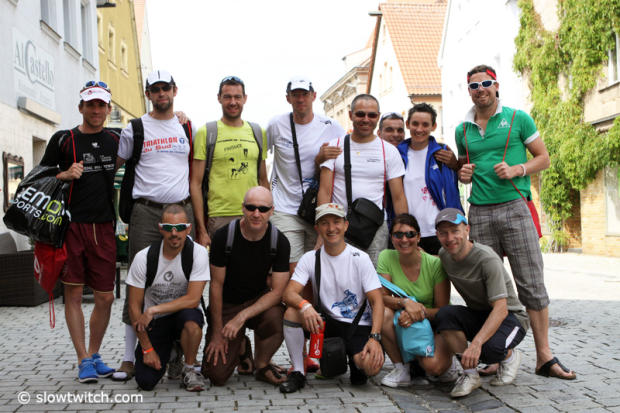 This large group of french triathletes from Issy Triathlon was roaming in downtown Roth.