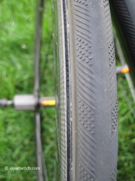 The overall width of the Mavic rim is clearly among the widest out there. Among these competitors, however, I see two camps emerging. First we have the “super blunt” shapes, which feature a very wide inner diameter of the rim (Zipp Firecrest 404 and 808, new Lightweight Fernweg, Bontrager D3 wheels). These rims tend to look very symmetrical as a system – i.e. when they have a tire mounted.