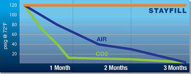 There is another common scenario in which StayFill is a great solution: long-term storage. Raise your hand if your father’s garage includes a 1970’s Schwinn – with flat tires. Or, if you’re like me and have enough bikes to equip a small village, some of these bikes may sit dormant for months at a time. Maybe you ride that mountain bike in the winter, but it goes untouched during the summer. Perhaps you really just wanted to help stimulate the economy, and had to have that second set of race wheels for different wind conditions. When wheels and bikes sit for long periods of time, the tires go flat. Sure, you can always just pump them back up, but there are some modern complications which dictate that you keep your tires inflated all the time.