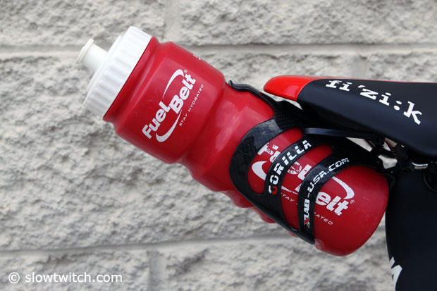 The XLab Gorilla cage is mounted high and up under the saddle.