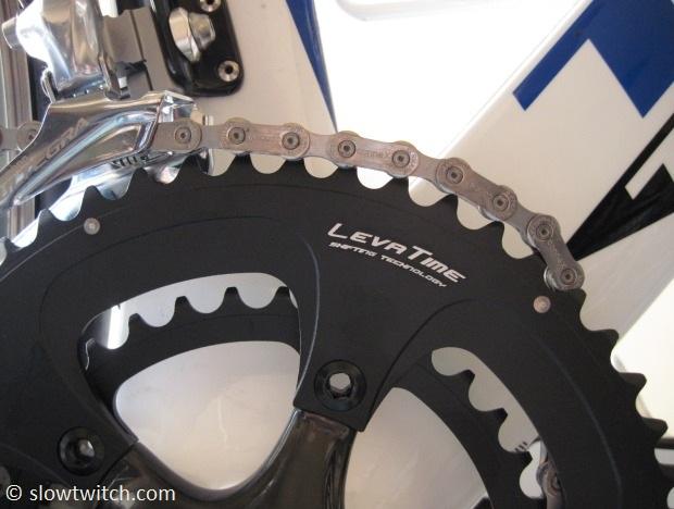 The science half is due to the fact that there already many patents on chainring technology. You’ve got to avoid the outlawed designs and find a way around it that works. The art half is analogous to the wind tunnel. You may have an idea of how you think something will perform during the initial design process… but you never really know until you test it. With bike frames, this means many trips to the wind tunnel. With chainrings, it means installing, testing, and making revisions over and over again. The action of the shift must be designed in a certain way. Perhaps very tall chainring teeth provide better chain retention in a situation of extreme cross-chaining. But that may also mean the chain has a tougher time making the climb from small to big ring. There are countless other considerations (and compromises) that must be made in order to achieve a shift that is as close to perfect as possible. Praxis’ take on this math problem is a technology called LevaTime. While I’m no chainring engineer, it sounds like they did their homework. And – as I always say – the proof is in the pudding. If it really worked, I’d find out soon.