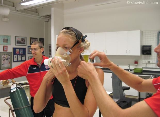 This specific workout session took place on Tuesday, July 31st, 2012, at the Olympic Training Center in Colorado Springs, CO. Sarah and Nate spend their winters in Clermont, FL for the warm weather, and the summers in Colorado for the altitude training. They’ve come to find over time, however, that Sarah still benefits from some sea-level training throughout the year. That’s not possible in Colorado Springs, so they use supplemental oxygen for these key sessions.