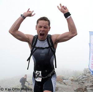 Skollerud Hegna though had a swift transition and started the run first, but that did not last very long and Finger soon took over the lead again and she was running well under the course record time. Kenyon meanwhile was steadily running in third position but behind her Charlotte Knudsen was moving even faster. Both Knudsen and Kenyon caught Skollerud Hegna, but Finger was out of reach for them. The German actually smashed the course record time in 12:17:04, and as a bonus after crossing the finish line on top of the Gaustatoppen got a wedding proposal from her boyfriend Anders – to which she said "Yes."