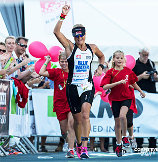 Pedersen, coming into this race after a 2nd place finish at the ITU Long Distance World championship in Spain, a win at the half distance Challenge Aarhus and a 4th place at the Challenge Kraichgau half, broke out fast with a race-best 48:51 swim that gave her a 2:16 advantage on Katja Konschak of Germany and 2:21 over Lisbeth Kristensen of Denmark. After a race-best 2:12 first transition and a race-fastest 4:59:05 bike split, Pedersen held a 5:07 lead on Kristensen, who was making an impressive return to long distance racing, and 19:27 on Konschak.