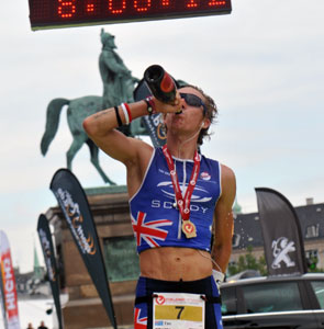 Farlow, who had Iron-distance wins at Ironman UK in 2011 and Challenge Wanaka in 2012, swam 47:01, just behind Dane Andreas Borch, rode aggressively to the lead over defending champ Tim Berkel and last year’s runner-up Jimmy Johnsen with a race-fastest 4:26:43 bike split, and defended his advantage with a 6th-best 3:03:00 marathon to finish in 8:20:09 with a 4:48 margin of victory over runner-up Mads Vittrup-Pedersen of Denmark and 5:06 over 3rd-place finisher Jimmy Johnsen of Denmark.
