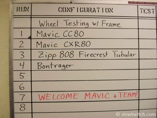 “Yes, we do have a standard protocol for wheel testing in our facility and that was what we used for this particular test. Our general test procedures are standard and mostly the same from test to test, however we do vary it in some ways for each specific Customer based on their requirements. Probably the biggest thing that changes for each test is the range of angles (yaw angles) and specific angles within that range. That is driven by the Customer for the particular wheel, bike, etc. For the Mavic test, we tested at angles from -25 to +25 degrees at every 2.5 degrees. But we have also tested 0 to 15 at every 5 degrees, and every combination in between.
