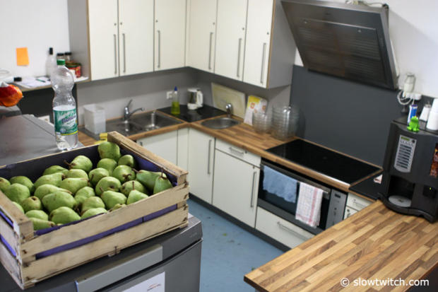 The lightweight crew has a nice kitchen a chef who is originally from Holland at their disposal at lunch time. The Boss wants the employees to have good and fresh food.