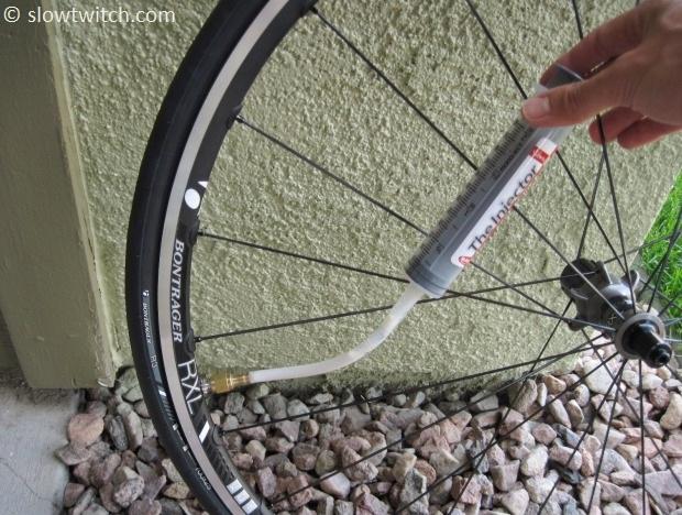 I used my trusty Stan’s injector tool to install the sealant. While Bontrager says that you only need one ounce, I used two per tire. I live in the dry climate of Colorado, and simply want to limit the number of times I have to re-inject more sealant as it dries. It costs me a little bit of weight, but is worth the time savings (for me).