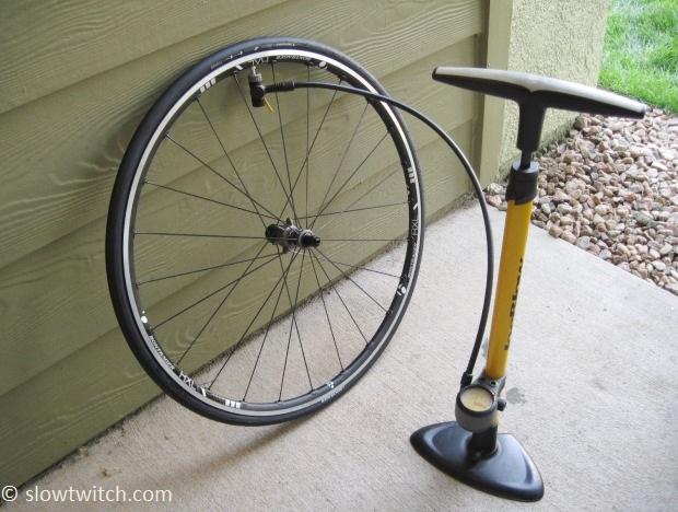 After that, I reinstalled the valve core and pumped up the tires. For good measure, I always do a little bit of the “Sealant Rain Dance” – spin the wheel, shake it around, and cut foot loose. This just ensures that the sealant coats the entire inside of the tire and seals any imperfections of the tire bead.
