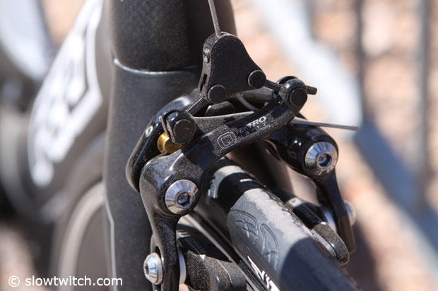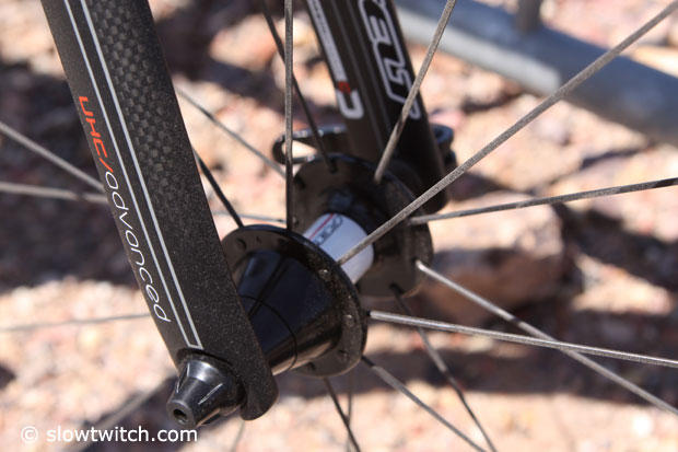Up close with the front hub of the TTR2 wheel and the Felt UHC Performance fork.